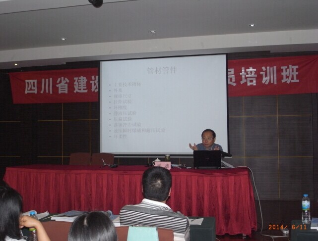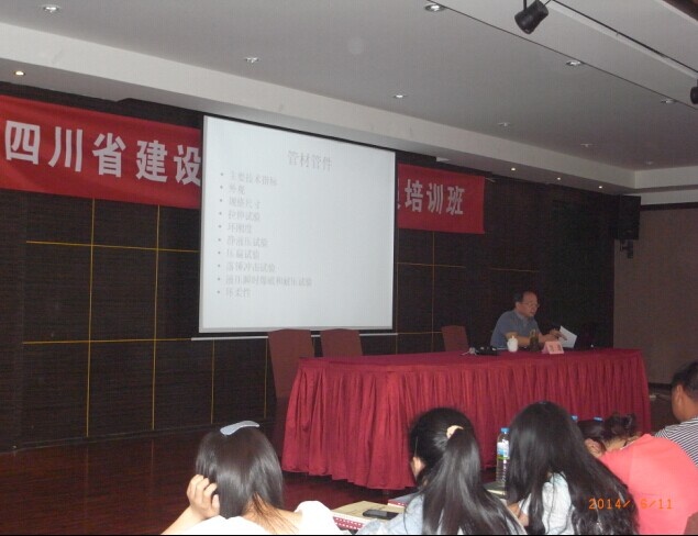 2014年6月10日-12日,四川省城乡建设信息学会举办了建设工程档案资料管理人员的培训,参加培训的有各工程质量安全监督机构、监理单位、检测机构、建设档案管理单位等相关人员,我公司总经理刘雄很荣幸的被邀请为该次培训会议的授课人,为大家讲解了建筑材料及检测材料检测的相关方面知识,让大家对建筑材料及检测有了更进一步的认识。