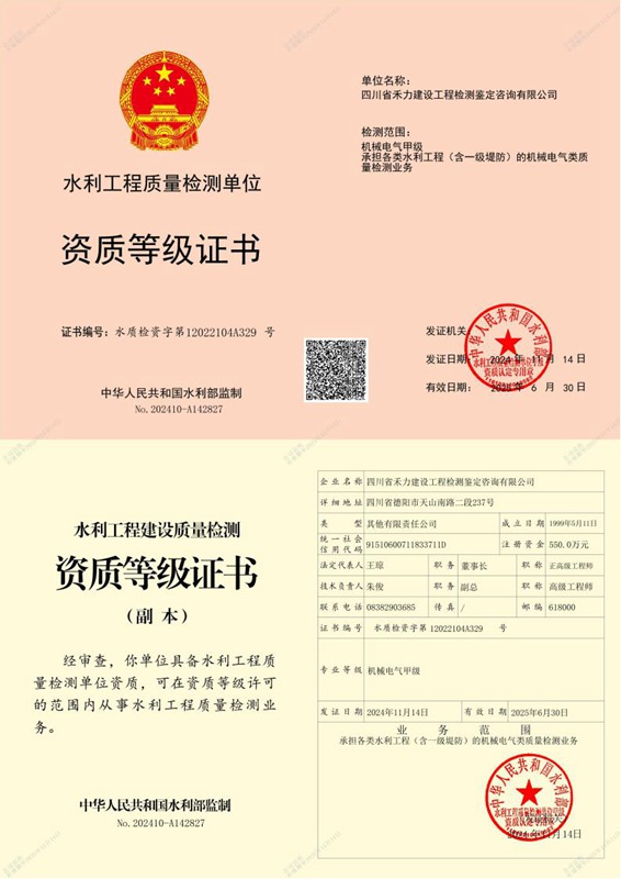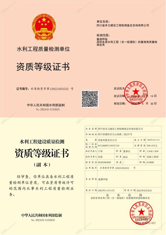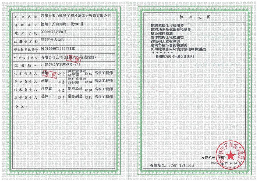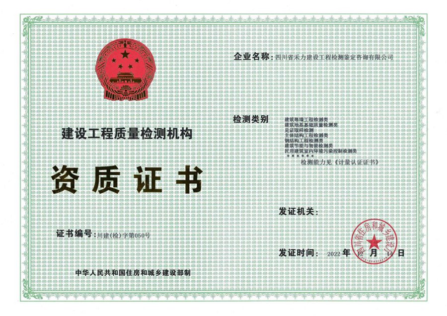 建设工程质量检测机构资质证书