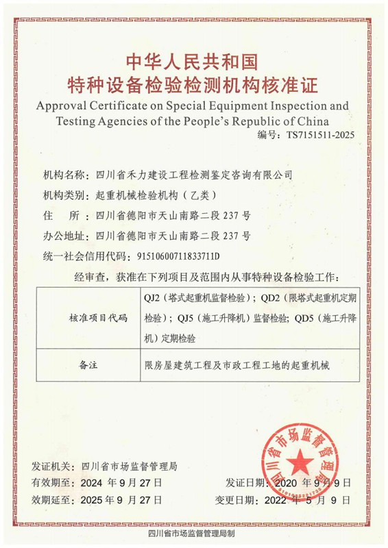 特种设备检验检测机构核准证