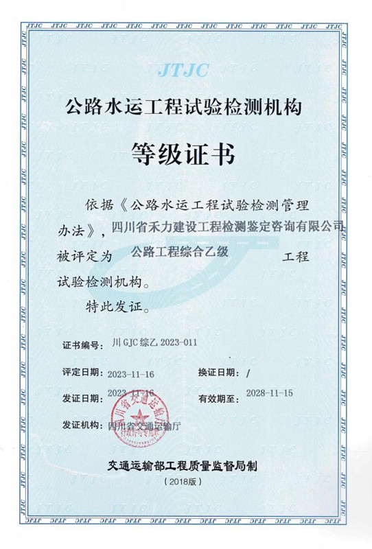 公路水运工程试验检测机构等级证书