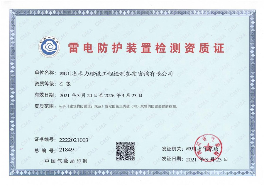 雷电防护装置检测资质证
