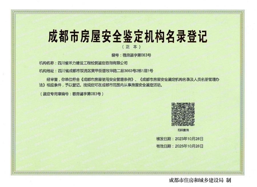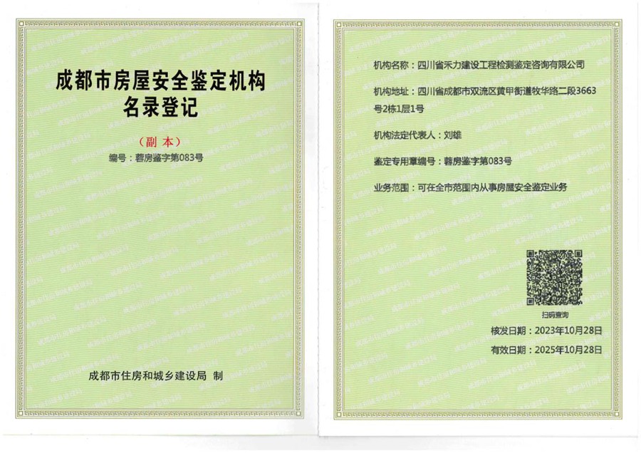 成都市房屋安全鉴定机构名录登记