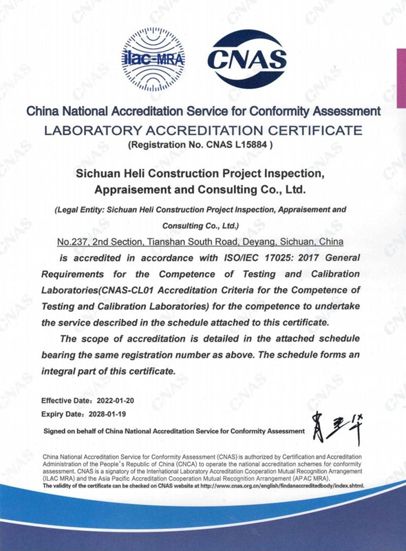 中国合格评定国家认可委员会实验室认可证书